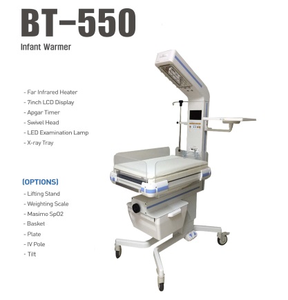 Máy sưởi ấmtrẻ sơ sinh BT-550 là một hệ thống làm ấm được điều khiển bằng vi tính giúp tăng khả năng kiểm soát việc chăm sóc trẻ sơ sinh.